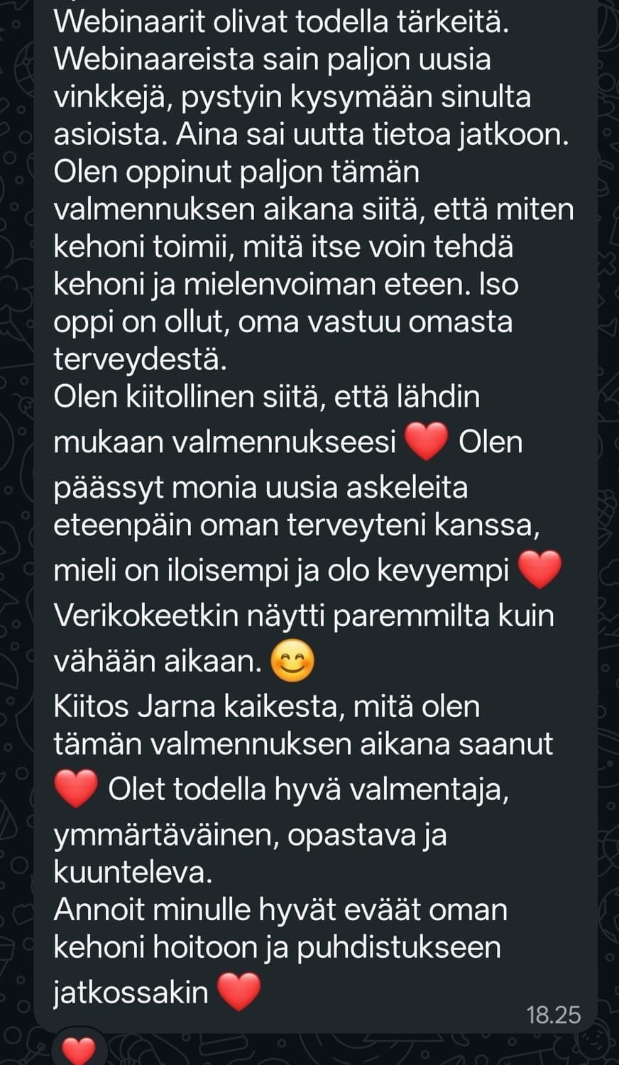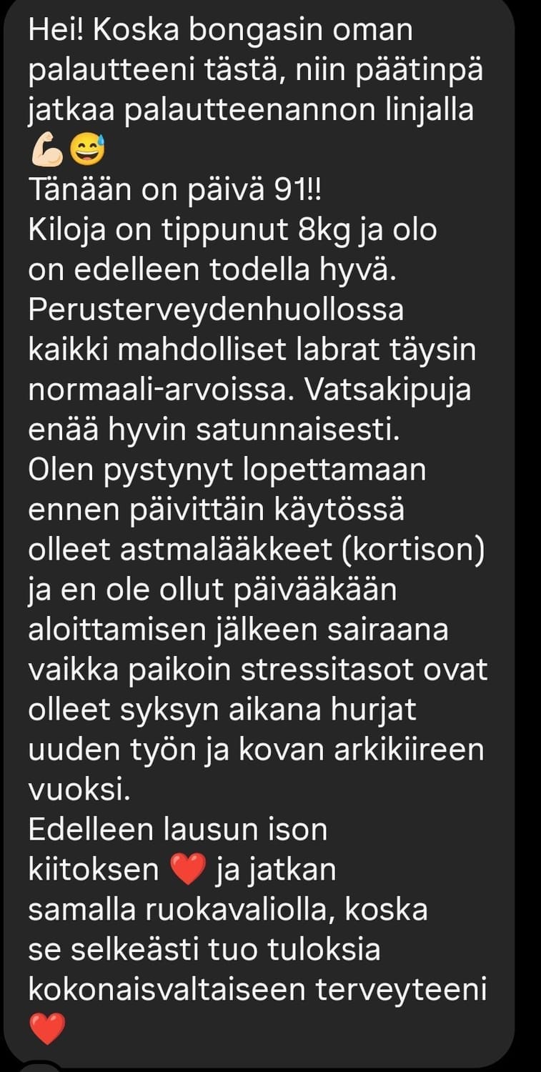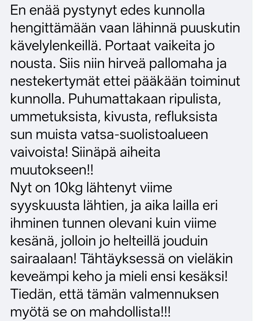 Ymmärrät paremmin, mitä kehossasi tapahtuu ja miksi. Ohjaus on yksilöllistä, mutta helposti toteutettavaa askel kerrallaan.