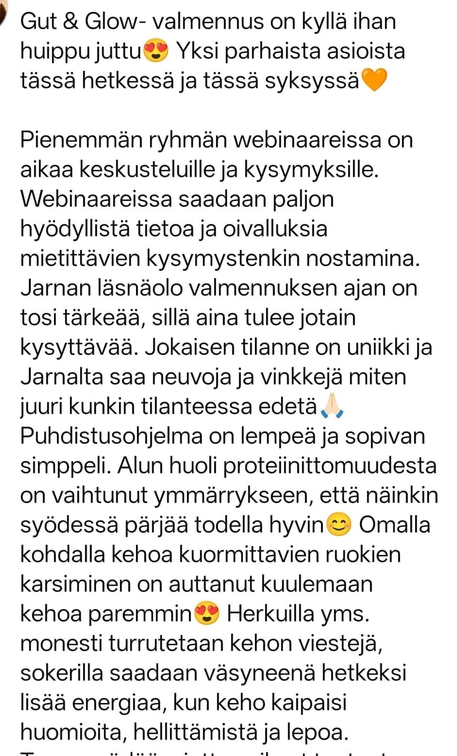 Kun suolisto voi paremmin, se heijastuu ihoon, hiuksiin ja yleiseen olemukseen elinvoimaisuutena, ei suorittamisena.
